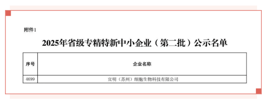 近日,宜明生物旗下宜明(苏州)细胞生物科技有限公司(以下简称"宜明细胞")捷报频传,凭借在先进治疗药品(ATMP)领域的前沿技术突破与卓越市场表现,成功入选2025年度江苏省省级专精特新中小企业,并荣登《GEI中国潜在独角兽企业研究报告2025》榜单,彰显了公司在ATMP CRDMO领域的卓越实力和强劲发展势头。